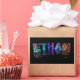 This image is a photograph of handmade letters, which change randomly, producing unique patterns and colours of light. The name Ethan is reflected in still water, with floating foil hexagons. The letters look as if they're carved from crackled ice or crystal. If you can't find a name you want, please get in touch, and I'll put it on my list. Please see NamesInLights.co.uk for larger examples of the standard of photography on these products.