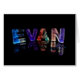 This image is a photograph of handmade letters, which change randomly, producing unique patterns and colours of light. The name Evan is reflected in still water, with floating foil hexagons. The letters look as if they're carved from crackled ice or crystal. If you can't find a name you want, please get in touch, and I'll put it on my list. Please see NamesInLights.co.uk for larger examples of the standard of photography on these products.
