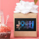 This image is a photograph of handmade letters, which change randomly, producing unique patterns and colours of light. The name Josh is reflected in still water, with floating foil hexagons. The letters look as if they're carved from crackled ice or crystal. If you can't find a name you want, please get in touch, and I'll put it on my list. Please see NamesInLights.co.uk for larger examples of the standard of photography on these products.