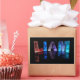 This image is a photograph of handmade letters, which change randomly, producing unique patterns and colours of light. The name Liam is reflected in still water, with floating foil hexagons. The letters look as if they're carved from crackled ice or crystal. If you can't find a name you want, please get in touch, and I'll put it on my list. Please see NamesInLights.co.uk for larger examples of the standard of photography on these products.