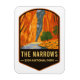 A vintage park badge design of the Narrows of Zion Canyon situated on the North Fork of the Virgin River in Zion National Park, Utah, United States.