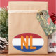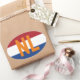 The flag of the Netherlands with the country abbreviation superimposed in orange.