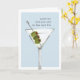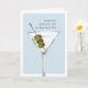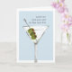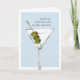 Sarcastic birthday card features a watercolor martini cocktail illustration on a blue-grey background with "however old you are is the new 30" in vintage typewriter lettering. Customise the inside message or leave as-is; default message reads "cheers to you -- happy birthday."
