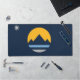 Desk Mat with the new flag of the city of Reno, Nevada; a dark blue flag with a yellow sun and blue mountains in the centre