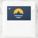 Sticker with the new flag of the city of Reno, Nevada; a dark blue flag with a yellow sun and blue mountains in the centre
