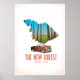 The new forest Hampshire England travel map presented with a beautiful old english car.