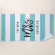 Our sweet personalised bride beach towel makes a perfect honeymoon gift for a newly married friend! Design features "The New Mrs. [lastname]" in modern, trendy black typography on a tropical turquoise and white striped background. Easily customise with the bride's new last name using the field provided. Prefer this for a bride-to-be? Simply switch "new" to "future."
