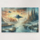 This new world of a shining city of delicate towers and sea creates flying through the air brings a fantasy world to life in this beautiful art piece as a unique puzzle.