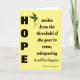 This holiday card to welcome a New Year has a green (symbolising new beginnings) hummingbird against a yellow (symbolising hope) background and a quote by Alfred Lord Tennyson: Hope smiles from the threshold of the year to come, whispering it will be happier.