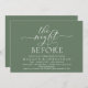 Announce your happily ever after in style with our modern forest sage green theme design (The Night Before) wedding rehearsal celebration invitation card. It is ideal for couples who have decided to celebrate the night before their big day. With its sophisticated yet playful design, this invitation is sure to set the tone for an unforgettable event. The invitation card features modern romantic script design, adding a touch of timeless elegance to your celebration. Designed by TeeshaDerrick