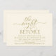 Announce your happily ever after in style with our modern yellow gold theme design (The Night Before) wedding rehearsal celebration invitation card. It is ideal for couples who have decided to celebrate the night before their big day. With its sophisticated yet playful design, this invitation is sure to set the tone for an unforgettable event. The invitation card features modern romantic script design, adding a touch of timeless elegance to your celebration. Designed by TeeshaDerrick