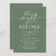 Announce your happily ever after in style with our modern forest sage green theme design (The Night Before) wedding rehearsal celebration invitation card. It is ideal for couples who have decided to celebrate the night before their big day. With its sophisticated yet playful design, this invitation is sure to set the tone for an unforgettable event. The invitation card features modern romantic script design, adding a touch of timeless elegance to your celebration. Designed by TeeshaDerrick