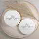 Simple and elegant round coasters for your rehearsal dinner, featuring “the night before” in classic black script. A timeless design that adds a personalised touch to your celebration.