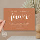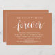 Announce your happily ever after in style with our modern rustic theme design (The Night Before Forever) wedding rehearsal celebration invitation card. It is ideal for couples who have decided to celebrate the night before their big day. With its sophisticated yet playful design, this invitation is sure to set the tone for an unforgettable event. The invitation card features a copper rust brown design, adding a touch of timeless elegance to your celebration. Designed by TeeshaDerrick