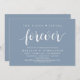 Announce your happily ever after in style with our modern rustic theme design (The Night Before Forever) wedding rehearsal celebration invitation card. It is ideal for couples who have decided to celebrate the night before their big day. With its sophisticated yet playful design, this invitation is sure to set the tone for an unforgettable event. The invitation card features dusty blue design, adding a touch of timeless elegance to your celebration. Designed by TeeshaDerrick