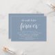Announce your happily ever after in style with our modern dusty blue theme design (The Night Before Forever) wedding rehearsal celebration invitation card. It is ideal for couples who have decided to celebrate the night before their big day. With its sophisticated yet playful design, this invitation is sure to set the tone for an unforgettable event. The invitation card features a greenery design, adding a touch of timeless rustic elegance to your celebration. Designed by TeeshaDerrick