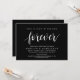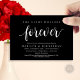 Announce your happily ever after in style with our modern rustic theme design (The Night Before Forever) wedding rehearsal celebration invitation card. It is ideal for couples who have decided to celebrate the night before their big day. With its sophisticated yet playful design, this invitation is sure to set the tone for an unforgettable event. The invitation card features classy black design, adding a touch of timeless elegance to your celebration. Designed by TeeshaDerrick