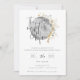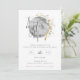 Elegant watercolor gilded moon adorned with delicate wildflower arrangement. The Night Before, wedding rehearsal celebration invitation. Modern and chic typography design. Back of card, shown in dark navy blue.