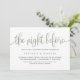 Set the tone for a memorable evening with our Customisable Rehearsal Dinner Invitation, featuring the elegant phrase "The Night Before" in whimsical script. This elegant rehearsal dinner invitation is designed to capture the excitement of the night before the big day. Whether you're hosting a small, intimate gathering or a larger celebration, this wedding rehearsal invitation is the perfect way to invite your closest friends and family to share in the magic. Personalise the invitation with your event details, including the date, time, and location.