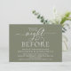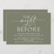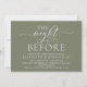Modern Romantic Calligraphy, White Script, Forest Sage Green Background, Wedding Rehearsal Dinner invitation card (with card title: the night before). It is perfect for your wedding rehearsal dinner celebration party, before your best day. Add your details in matching black font / lettering.