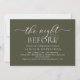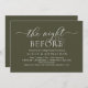 Modern Romantic Calligraphy, Dark Olive Sage Green themed, Wedding Rehearsal Dinner invitation card (with card title: the night before). It is perfect for your wedding rehearsal dinner celebration party, before your best day. Add your details in matching black font / lettering.