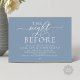 Celebrate the magical evening before “I do” with this sophisticated and romantic dusty blue rehearsal dinner invitation — perfect for honoring the couple as they prepare for their big day. Design Highlights, Modern minimalist aesthetic with bold serif typography and flowing script, “The Night Before” headline sets a dreamy, timeless tone, Clean layout with ample space for all essential details (date, time, venue, RSVP info) and Crisp black text on white background — classic, chic, and effortlessly elegant. Perfect for Intimate rehearsal dinners, Pre-wedding celebrations with family and close friends and Couples who love modern calligraphy and understated luxury.