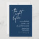 Announce your happily ever after in style with our modern portrait Navy Blue theme design (The Night Before) wedding rehearsal celebration invitation card. It is ideal for couples who have decided to celebrate the night before their big day. With its sophisticated yet playful design, this invitation is sure to set the tone for an unforgettable event. The invitation card features modern romantic script design, adding a touch of timeless elegance to your celebration. Designed by TeeshaDerrick