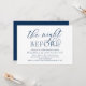 Announce your happily ever after in style with our modern classy navy blue theme design (The Night Before) wedding rehearsal celebration invitation card. It is ideal for couples who have decided to celebrate the night before their big day. With its sophisticated yet playful design, this invitation is sure to set the tone for an unforgettable event. The invitation card features modern romantic script design, adding a touch of timeless elegance to your celebration. Designed by TeeshaDerrick