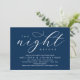 Planning a classy romantic modern wedding Rehearsal Dinner celebration with the to-be Bride and to-be Groom, before their BIG day? Invite the guests with this "the night before" Perfect modern rustic Wedding Rehearsal Dinner navy blue Invitation Card. Add your rehearsal dinner celebration details in black and white themed.