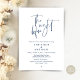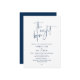 "The Night Before". Modern romantic minimalist design themed, wedding rehearsal dinner invitation card (in navy blue, portrait orientation theme). Planning a wedding Rehearsal Dinner celebration with the to-be Bride and to-be Groom, before their BIG day? Invite the guests with this perfect Wedding Rehearsal Dinner Invitation Card. Easily edit it with your rehearsal dinner invitation details.