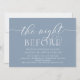 Modern Romantic Calligraphy, dusty blue scheme, Wedding Rehearsal Dinner invitation card (with card title: the night before). It is perfect for your wedding rehearsal dinner celebration party, before your best day. Add your wedding details.
