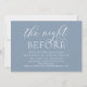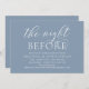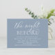 Announce your happily ever after in style with our modern classy dusty blue theme design (The Night Before) wedding rehearsal celebration invitation card. It is ideal for couples who have decided to celebrate the night before their big day. With its sophisticated yet playful design, this invitation is sure to set the tone for an unforgettable event. The invitation card features modern romantic script design, adding a touch of timeless elegance to your celebration. Designed by TeeshaDerrick