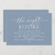 Announce your happily ever after in style with our modern dusty blue theme design (The Night Before) wedding rehearsal celebration invitation card. It is ideal for couples who have decided to celebrate the night before their big day. With its sophisticated yet playful design, this invitation is sure to set the tone for an unforgettable event. The invitation card features modern romantic script design, adding a touch of timeless elegance to your celebration. Designed by TeeshaDerrick