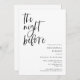 Minimalist wedding rehearsal dinner invitation featuring modern script font that says "the night before."