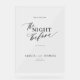 Elegant simple minimal clear transparent black and white "the night before" rehearsal dinner acrylic welcome sign featuring a classy stylish chic trendy calligraphy script.