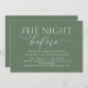 Announce your happily ever after in style with our modern forest sage green theme design (The Night Before) wedding rehearsal celebration invitation card. It is ideal for couples who have decided to celebrate the night before their big day. With its sophisticated yet playful design, this invitation is sure to set the tone for an unforgettable event. The invitation card features modern romantic script design, adding a touch of timeless elegance to your celebration. Designed by TeeshaDerrick