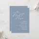 Announce your happily ever after in style with our modern aesthetic dusty blue theme design (The Night Before) wedding rehearsal celebration invitation card. It is ideal for couples who have decided to celebrate the night before their big day. With its sophisticated yet playful design, this invitation is sure to set the tone for an unforgettable event. The invitation card features modern romantic script design, adding a touch of timeless elegance to your celebration. Designed by TeeshaDerrick