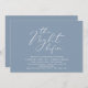 Announce your happily ever after in style with our modern aesthetic dusty blue theme design (The Night Before) wedding rehearsal celebration invitation card. It is ideal for couples who have decided to celebrate the night before their big day. With its sophisticated yet playful design, this invitation is sure to set the tone for an unforgettable event. The invitation card features modern romantic script design, adding a touch of timeless elegance to your celebration. Designed by TeeshaDerrick