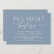 Announce your happily ever after in style with our modern dusty blue theme design (The Night Before) wedding rehearsal celebration invitation card. It is ideal for couples who have decided to celebrate the night before their big day. With its sophisticated yet playful design, this invitation is sure to set the tone for an unforgettable event. The invitation card features modern romantic script design, adding a touch of timeless elegance to your celebration. Designed by TeeshaDerrick