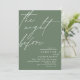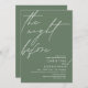 Announce your happily ever after in style with our modern forest sage green theme design (The Night Before) wedding rehearsal celebration invitation card. It is ideal for couples who have decided to celebrate the night before their big day. With its sophisticated yet playful design, this invitation is sure to set the tone for an unforgettable event. The invitation card features modern romantic script design, adding a touch of timeless elegance to your celebration. Designed by TeeshaDerrick