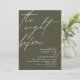 Announce your happily ever after in style with our modern olive green theme design (The Night Before) wedding rehearsal celebration invitation card. It is ideal for couples who have decided to celebrate the night before their big day. With its sophisticated yet playful design, this invitation is sure to set the tone for an unforgettable event. The invitation card features modern romantic script design, adding a touch of timeless elegance to your celebration. Designed by TeeshaDerrick