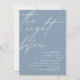 Announce your happily ever after in style with our modern dusty blue theme design (The Night Before) wedding rehearsal celebration invitation card. It is ideal for couples who have decided to celebrate the night before their big day. With its sophisticated yet playful design, this invitation is sure to set the tone for an unforgettable event. The invitation card features modern romantic script design, adding a touch of timeless elegance to your celebration. Designed by TeeshaDerrick