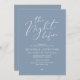 Announce your happily ever after in style with our modern classy aesthetic dusty blue theme design (The Night Before) wedding rehearsal celebration invitation card. It is ideal for couples who have decided to celebrate the night before their big day. With its sophisticated yet playful design, this invitation is sure to set the tone for an unforgettable event. The invitation card features modern romantic script design, adding a touch of timeless elegance to your celebration. Designed by TeeshaDerrick