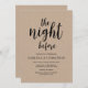 The night before, Rustic black script design, Brown Kraft card. Planning a wedding Rehearsal Dinner celebration with the to-be Bride and to-be Groom, before their BIG day? Invite the guests with this Perfect rustic script Wedding Rehearsal Dinner Invitation Card. Add your rehearsal dinner details in matching font / lettering.