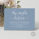 Announce your happily ever after in style with our modern contemporary classy dusty blue theme design (The Night Before) wedding rehearsal celebration invitation card. It is ideal for couples who have decided to celebrate the night before their big day. With its sophisticated yet playful design, this invitation is sure to set the tone for an unforgettable event. The invitation card features modern romantic script design, adding a touch of timeless elegance to your celebration. Designed by TeeshaDerrick