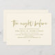 The Night Before, modern minimalist design, wedding rehearsal dinner invitation card (in classy gold themed). Planning a wedding Rehearsal Dinner celebration with the to-be Bride and to-be Groom, before their BIG day? Invite the guests with this perfect Wedding Rehearsal Dinner Invitation Card.