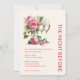 Modern night before design features pink roses and champagne for the perfect wedding rehearsal dinner. Add your text and mail. For glam appeal, print on pearl shimmer paper.