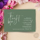 The Night Before. Modern romantic minimalist design themed, wedding rehearsal dinner invitation card (in sage green, landscape orientation theme). Planning a wedding Rehearsal Dinner celebration with the to-be Bride and to-be Groom, before their BIG day? Invite the guests with this perfect Wedding Rehearsal Dinner Invitation Card. Easily edit it with your rehearsal dinner invitation details.