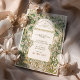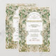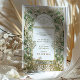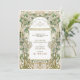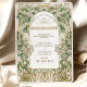 Set the tone for “the night before” with an elegant two-sided rehearsal dinner invitation inspired by classic Art Nouveau design. An ornate arched frame is filled with flowing botanical linework, all rendered in fine ink-style detail with soft watercolor shading. Creating a timeless look reminiscent of vintage poster art, decorative tilework, and turn-of-the-century illustration.