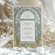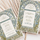 Set the tone for “the night before” with an elegant two-sided rehearsal dinner invitation inspired by classic Art Nouveau design. An ornate arched frame is filled with flowing botanical linework, all rendered in fine ink-style detail with soft watercolor shading. Creating a timeless look reminiscent of vintage poster art, decorative tilework, and turn-of-the-century illustration.